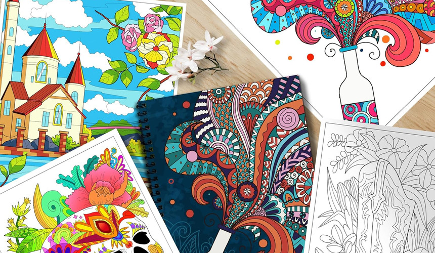 Adult Coloring Books Set of 3
